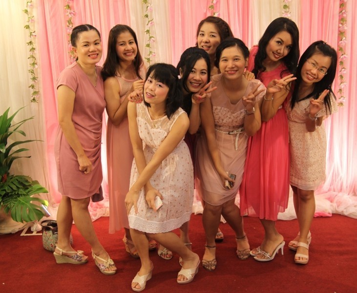 Die Freundinnen und Kolleginnen der Braut hatten sich übrigens abgesprochen und kamen alle in Pink.