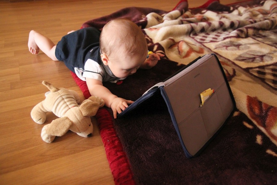 Mama arbeitet ein wenig an Papas Laptop. Sie hat zwar so ein schickes Tablett gewollt, aber die Fotos für Facebook kann sie dann eben doch nur auf dem guten alten Klapprechner bearbeiten.
